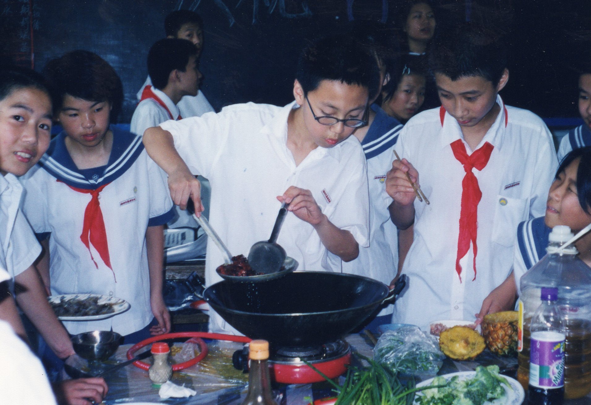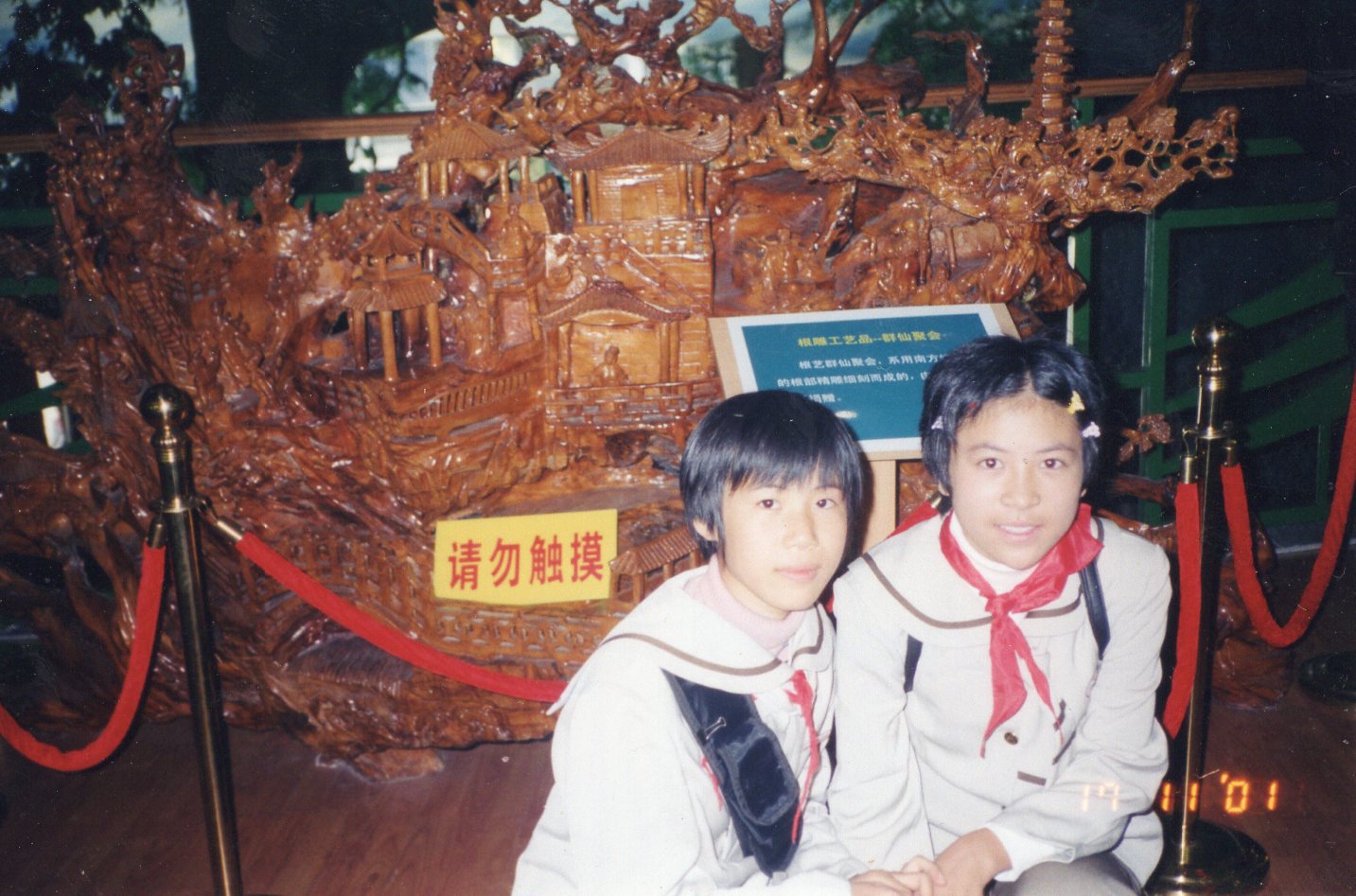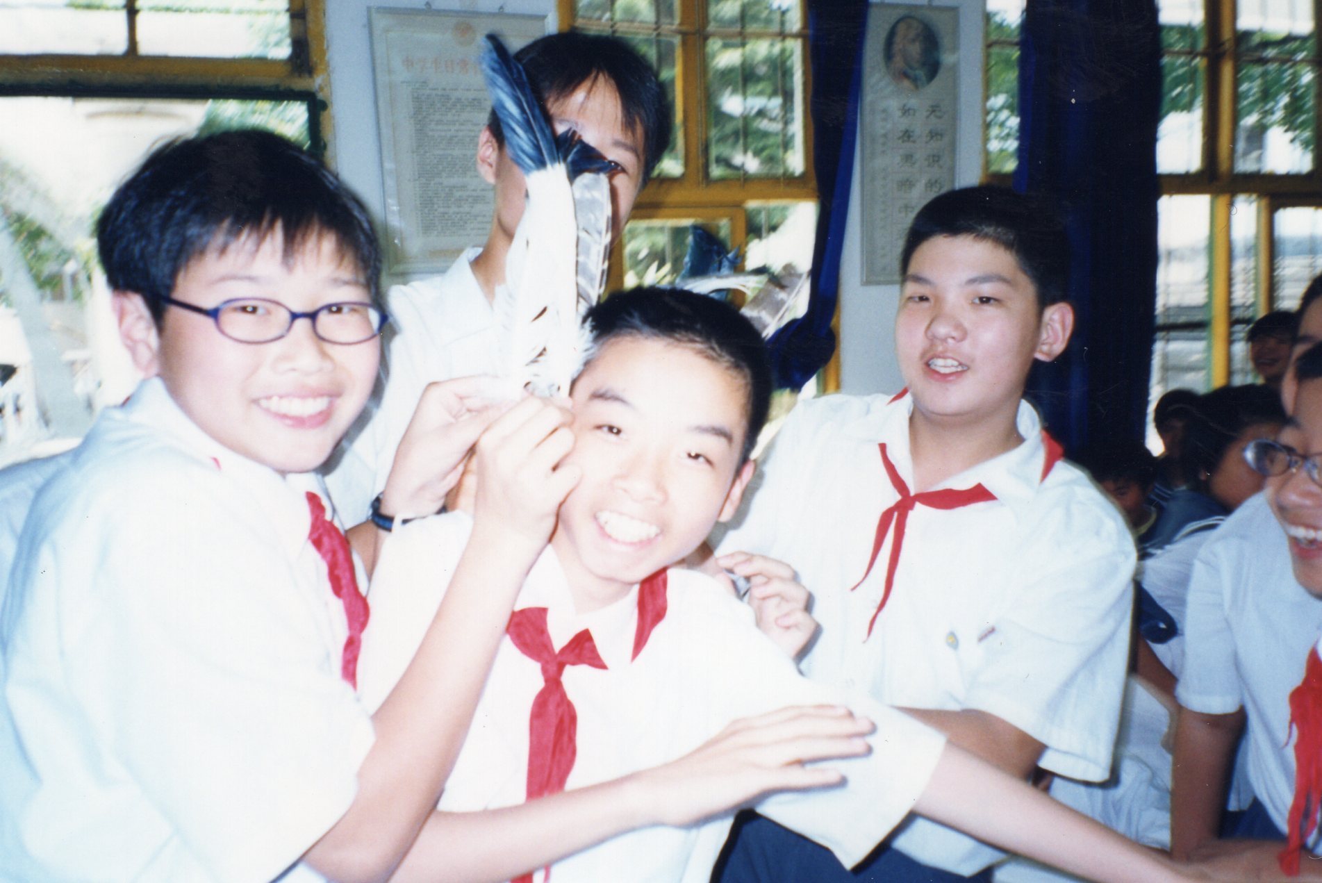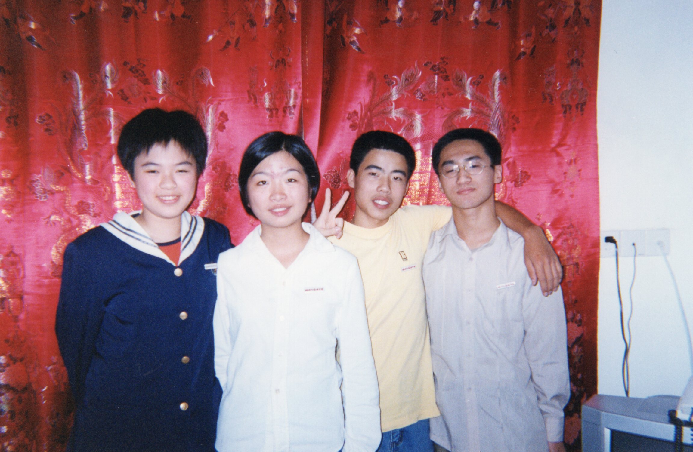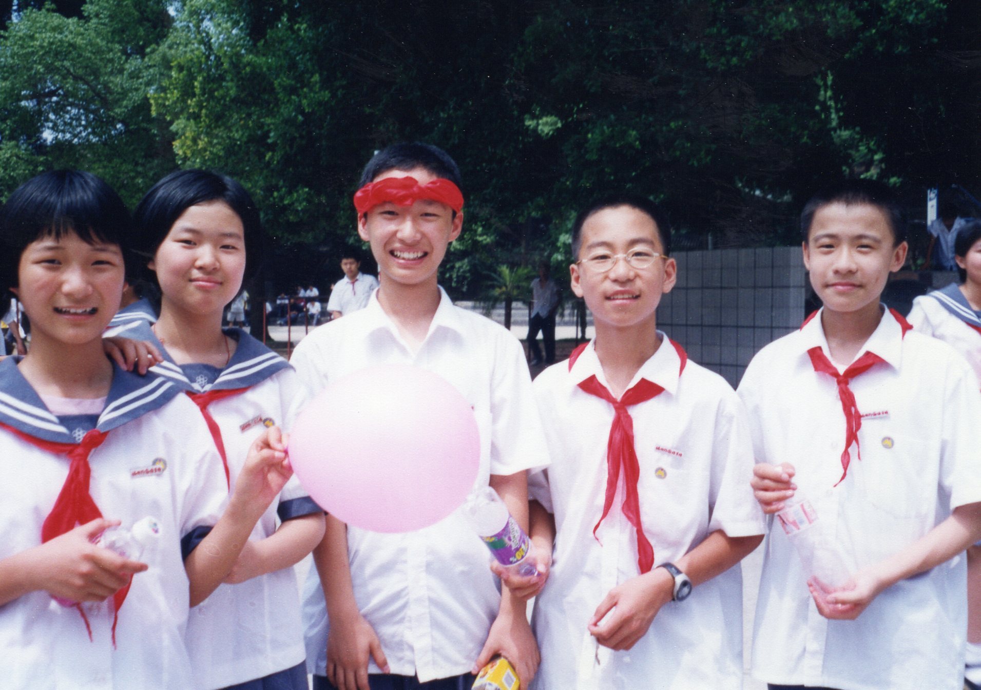 Photos from Jo Ann's time teaching at the Fuzhou Foreign Languages School in Fuzhou, China (2001–2002)—the school's first native English-speaking American teacher, known there as Miss Jones. The gallery includes the First Foreign Language Festival (December 2001), with Miss Fang's all-school celebration: songs, dances, and the O. Henry play The Policeman and the Anthem, performed by her spoken-English class at a packed local cinema.
