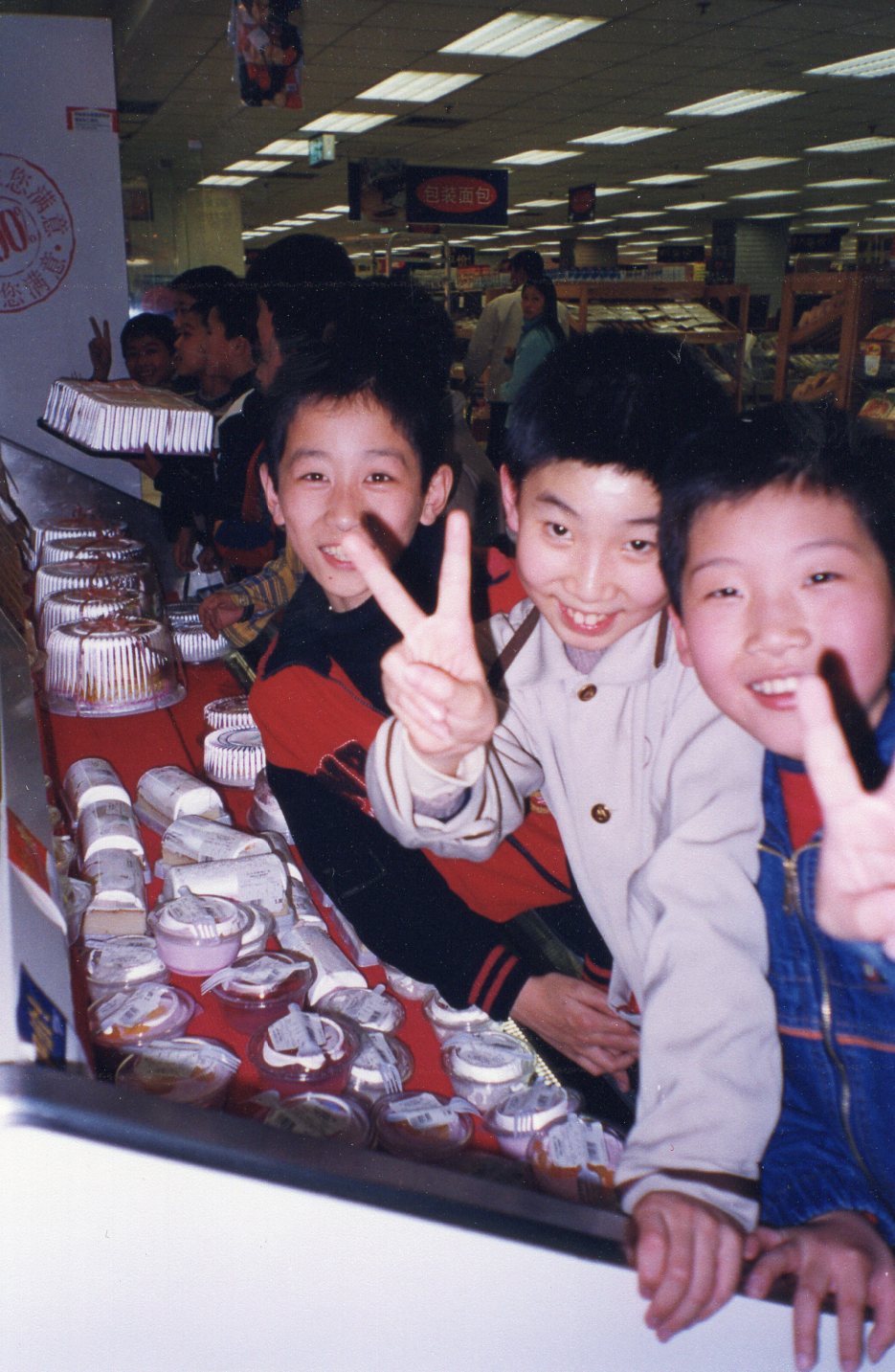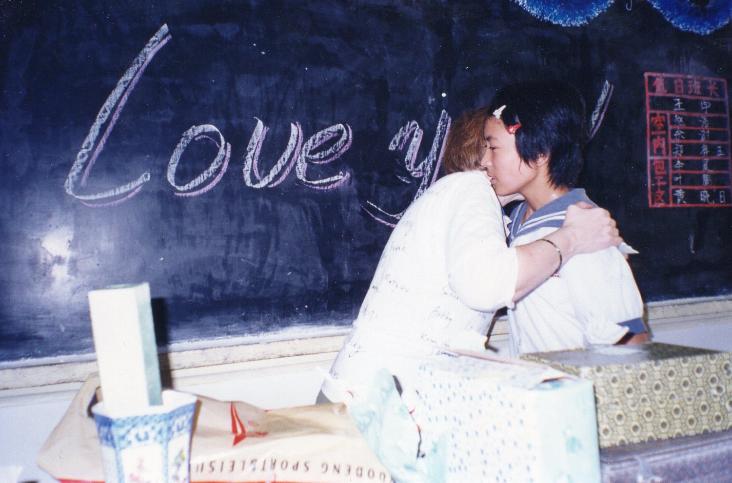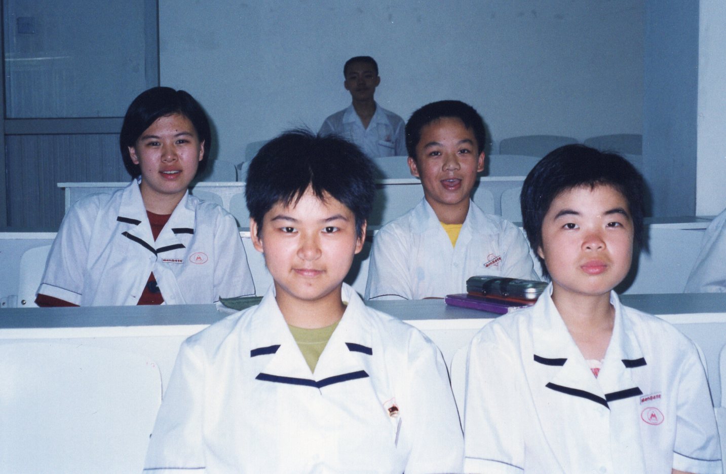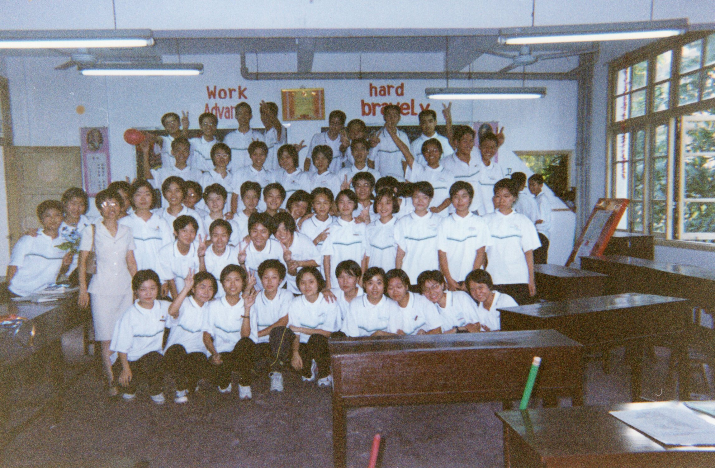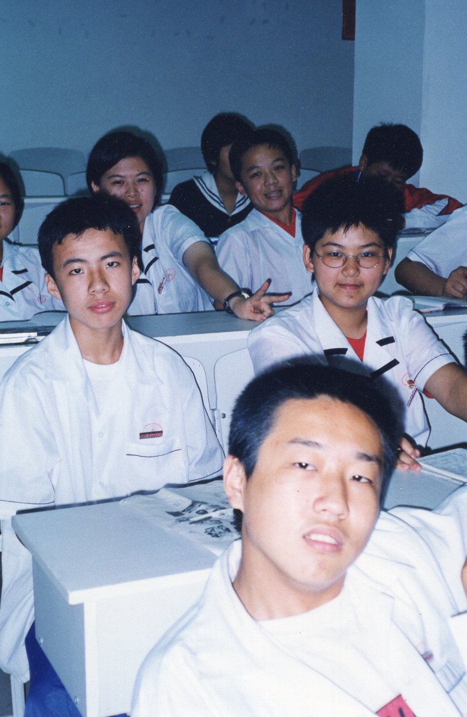 Photos from Jo Ann's time teaching at the Fuzhou Foreign Languages School in Fuzhou, China (2001–2002)—the school's first native English-speaking American teacher, known there as Miss Jones. The gallery includes the First Foreign Language Festival (December 2001), with Miss Fang's all-school celebration: songs, dances, and the O. Henry play The Policeman and the Anthem, performed by her spoken-English class at a packed local cinema.