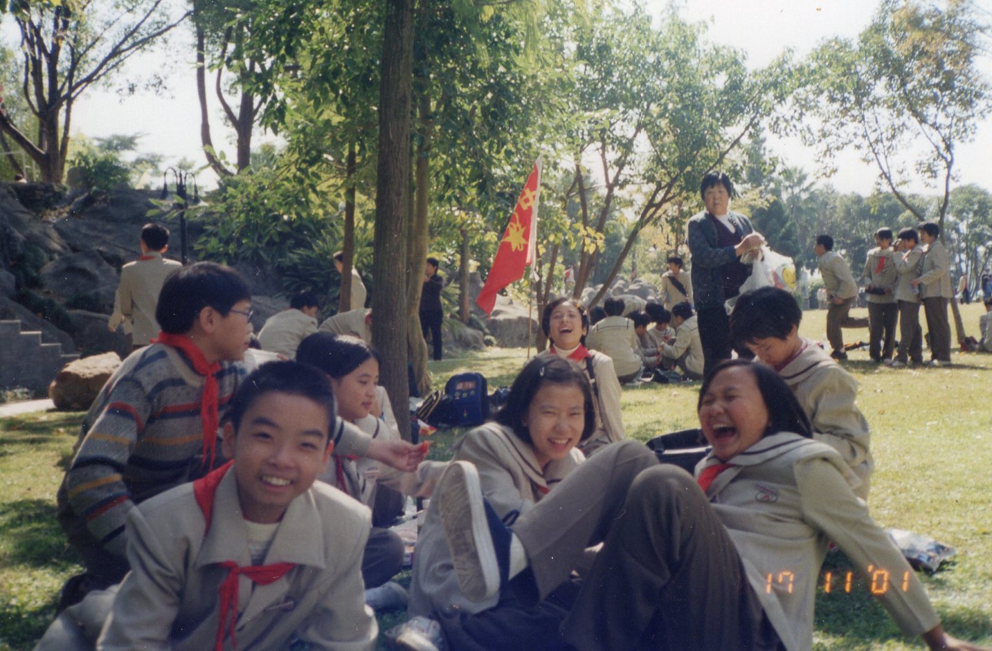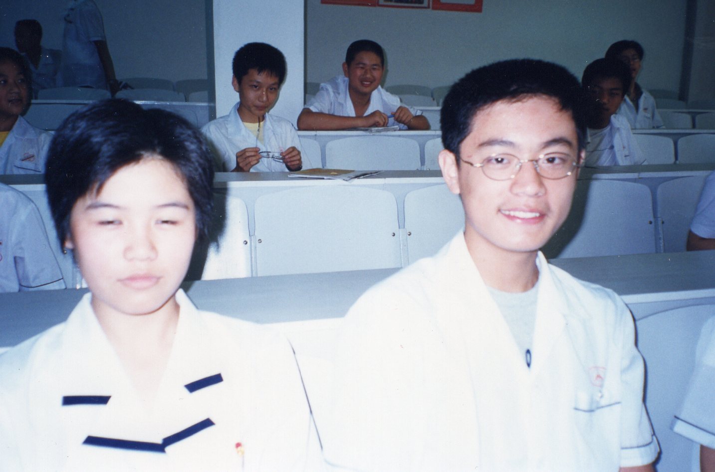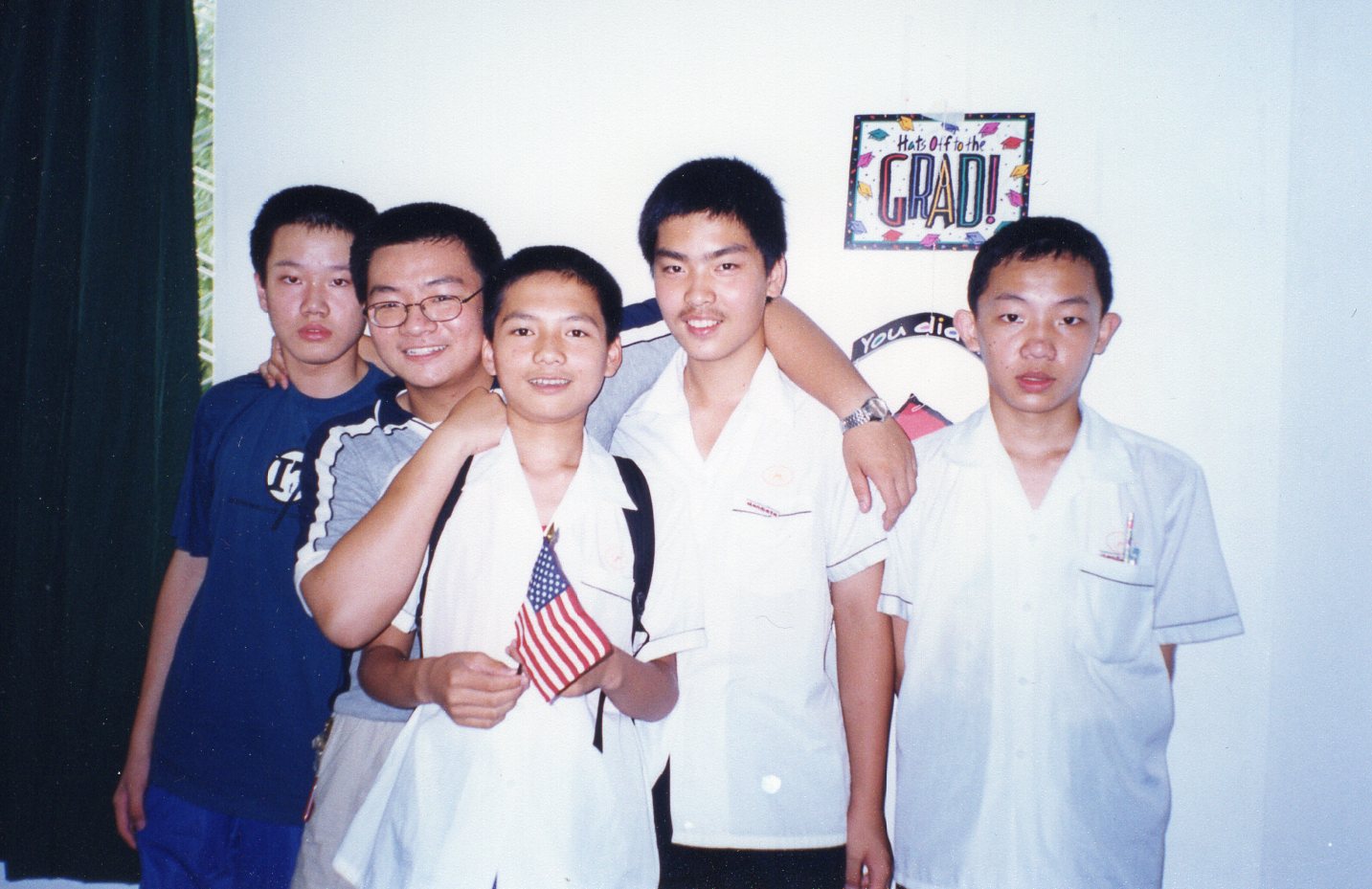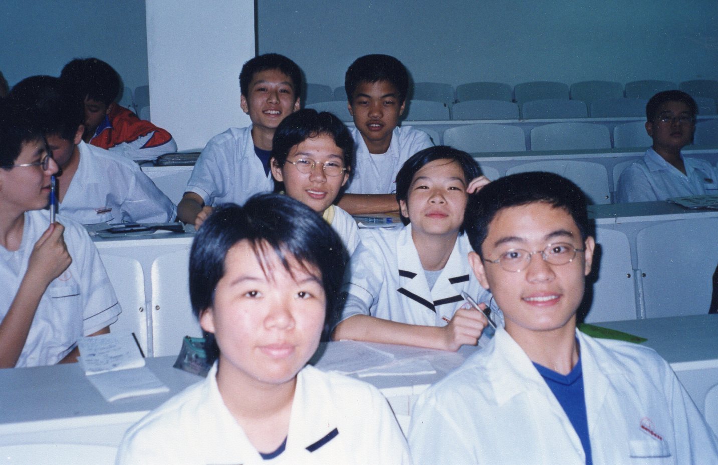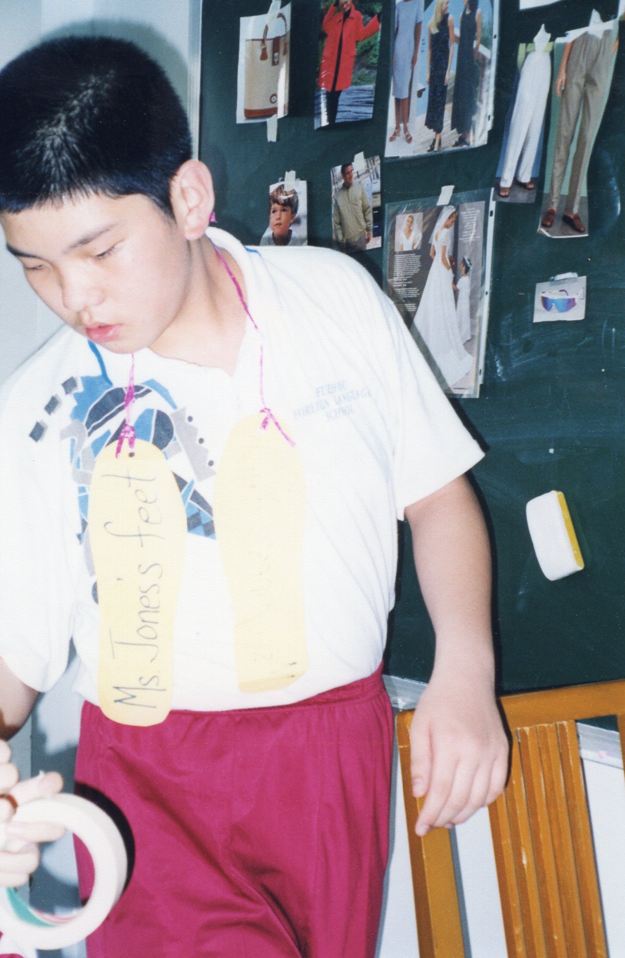 Photos from Jo Ann's time teaching at the Fuzhou Foreign Languages School in Fuzhou, China (2001–2002)—the school's first native English-speaking American teacher, known there as Miss Jones. The gallery includes the First Foreign Language Festival (December 2001), with Miss Fang's all-school celebration: songs, dances, and the O. Henry play The Policeman and the Anthem, performed by her spoken-English class at a packed local cinema.