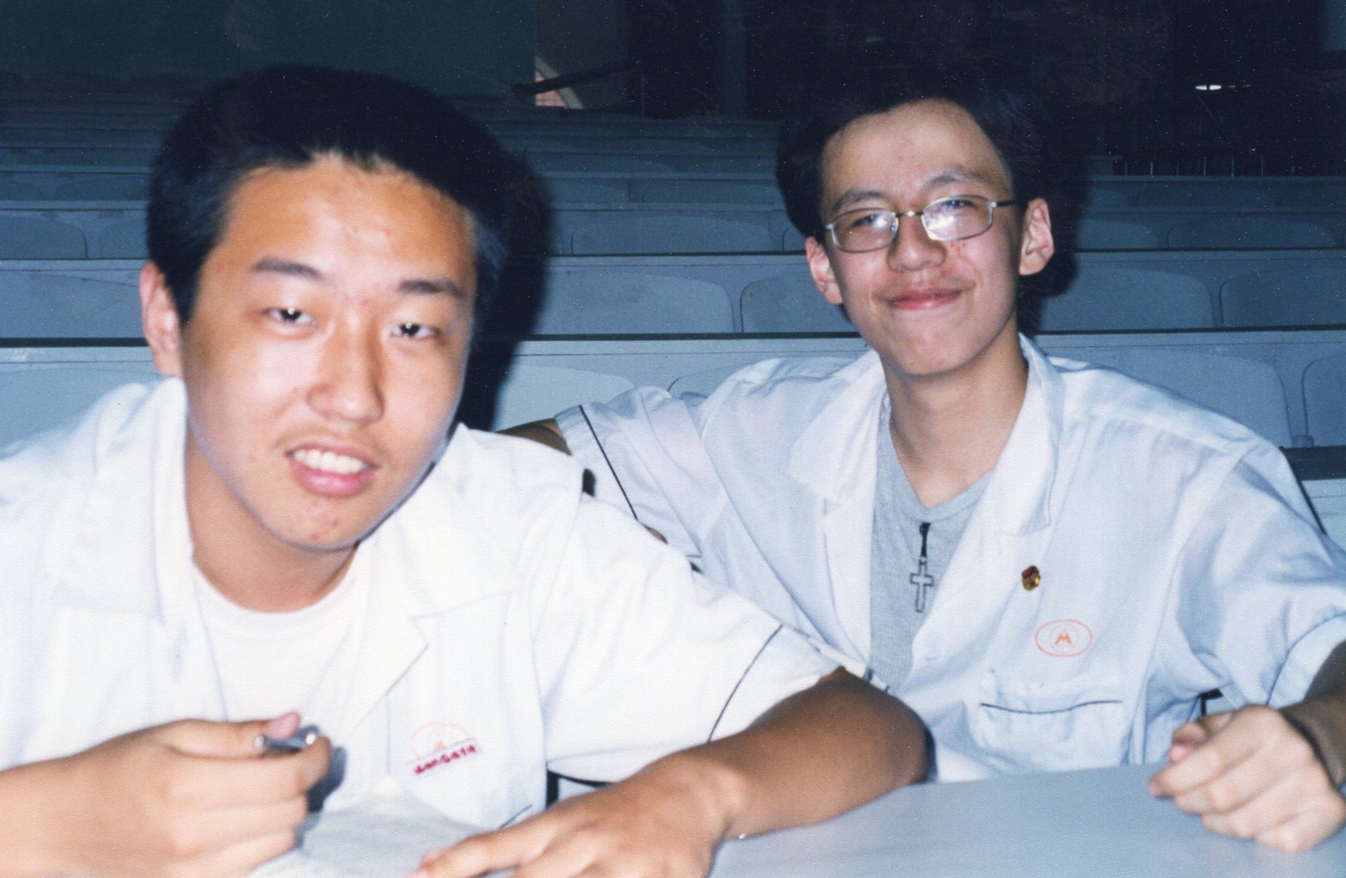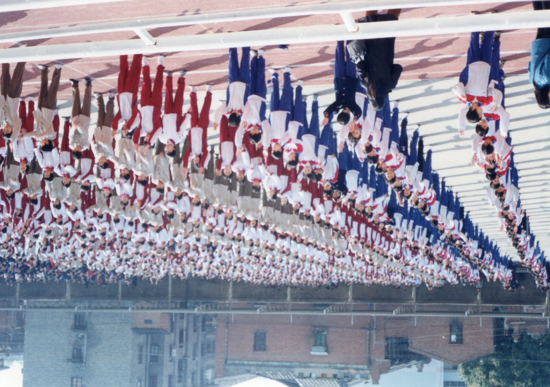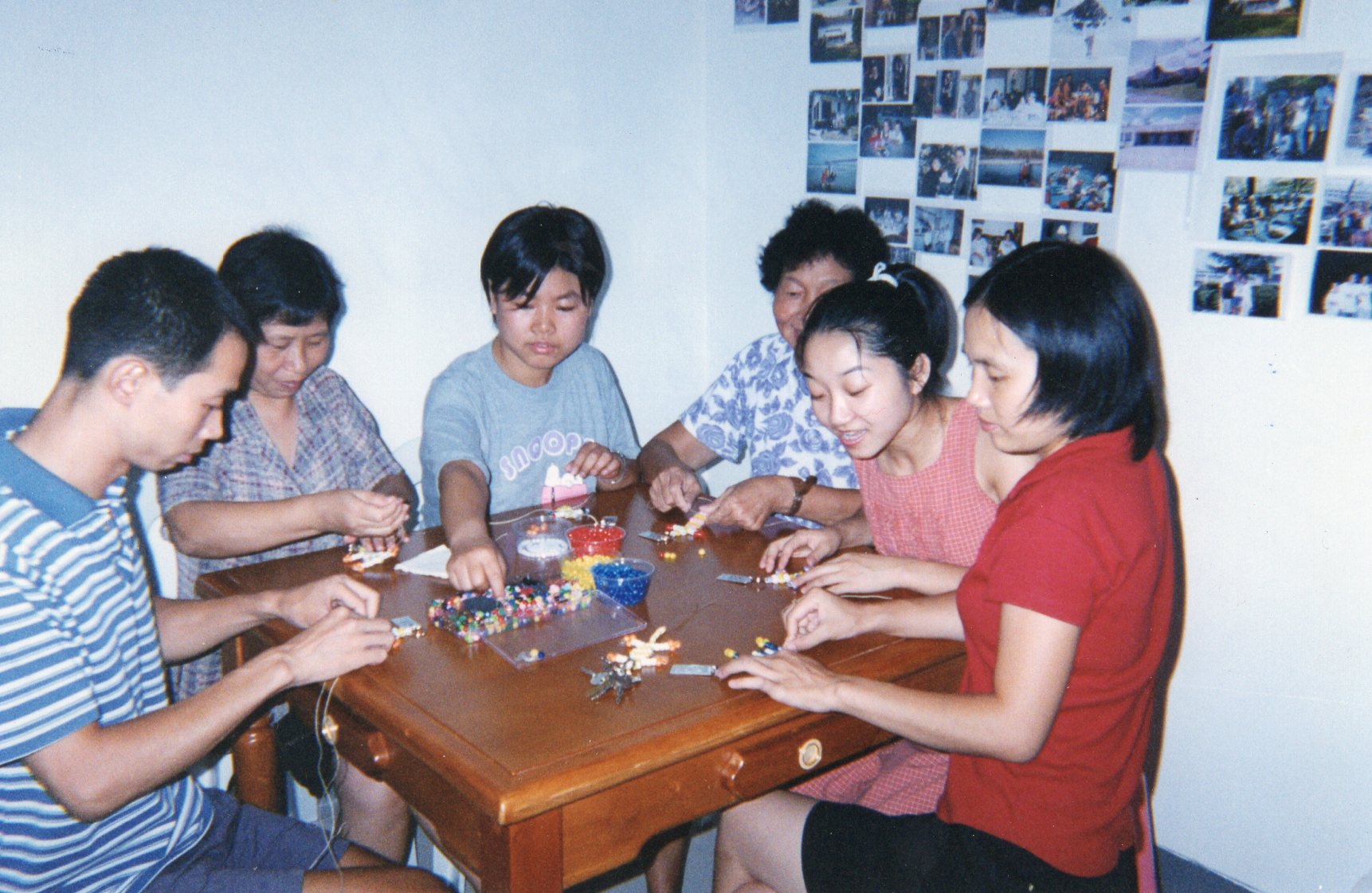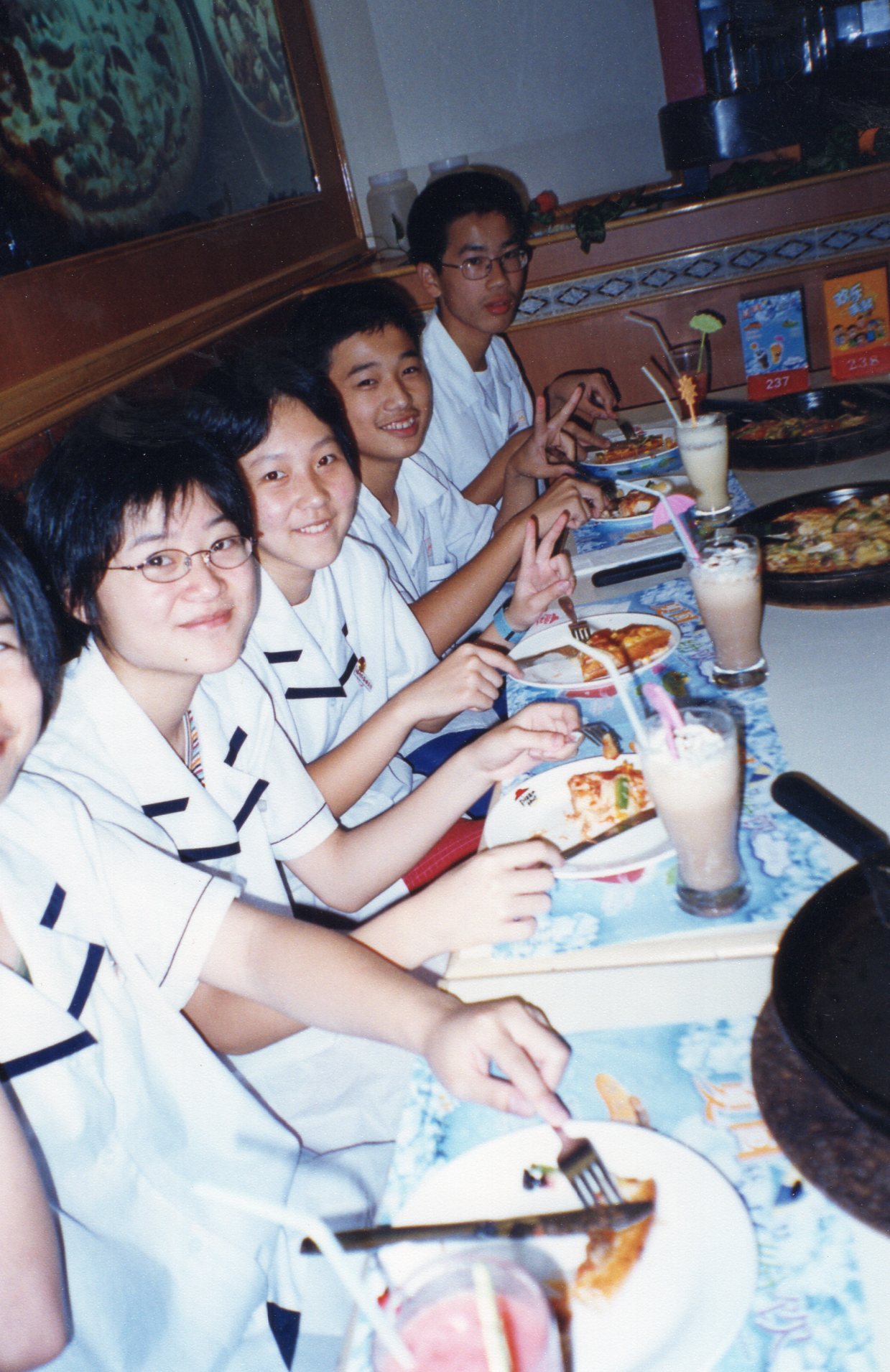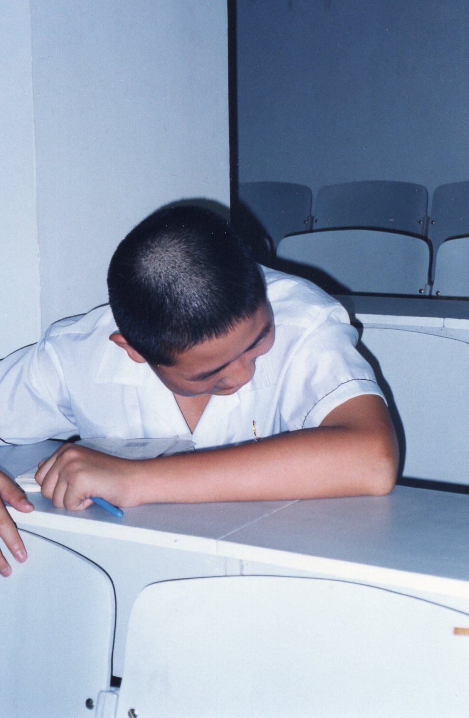 Photos from Jo Ann's time teaching at the Fuzhou Foreign Languages School in Fuzhou, China (2001–2002)—the school's first native English-speaking American teacher, known there as Miss Jones. The gallery includes the First Foreign Language Festival (December 2001), with Miss Fang's all-school celebration: songs, dances, and the O. Henry play The Policeman and the Anthem, performed by her spoken-English class at a packed local cinema.